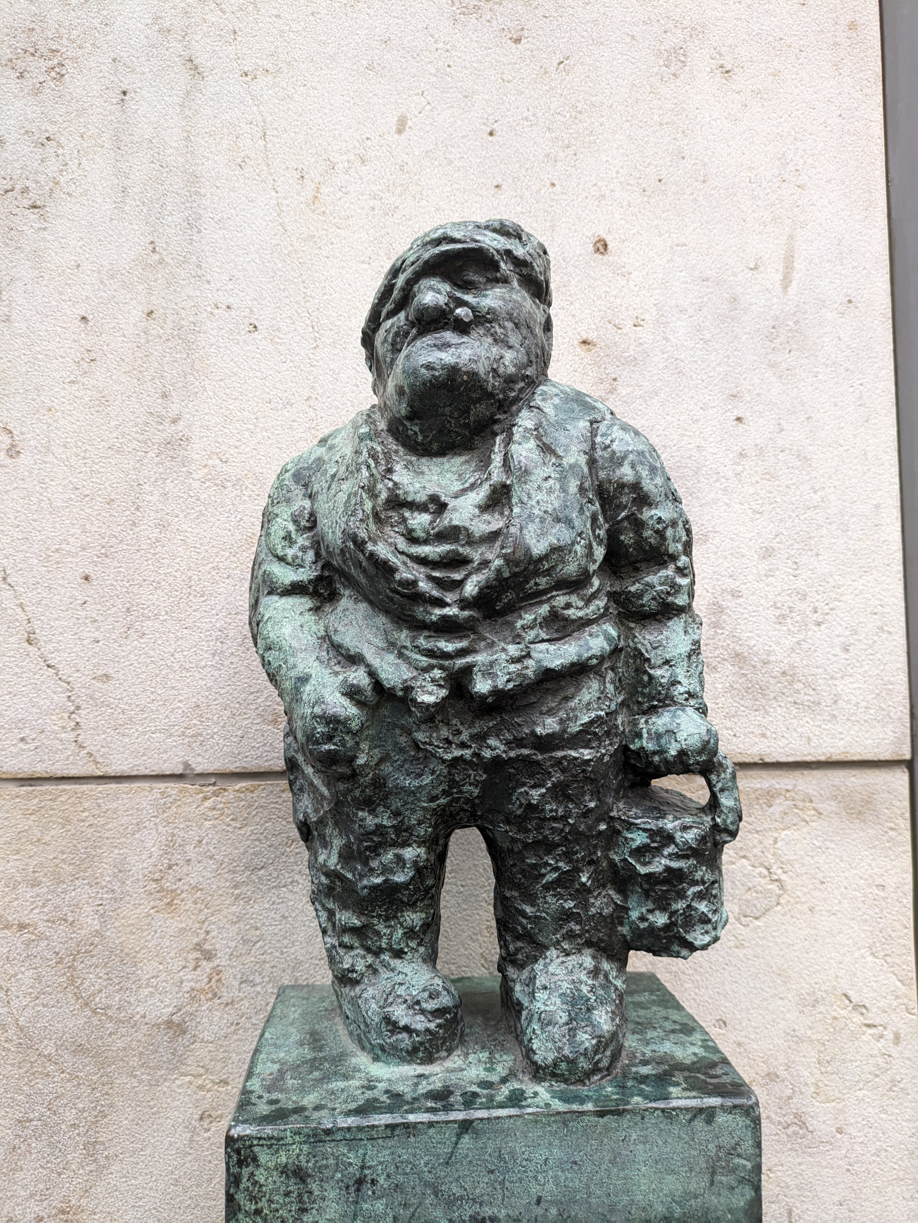But after researching another mini statue where I stalked the artists on his Instagram I realized Kolodko Mihály had created him. And the character is no one else than the famous Astrid Lindgren character Karlsson on the roof. If you look closely on the statue's back you can see he has a little propeller which real Karlsson is using to fly around.